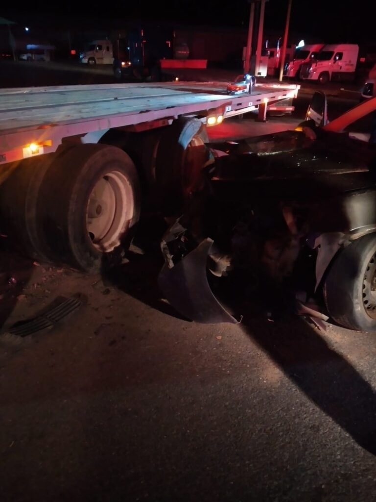 Sobre cómo sucedió el accidente, el tractocamión remolcaba dos plataformas y realizó una maniobra para ingresar a una estación de gasolina, cortándole el paso al automóvil compacto, impactando en el eje trasero de la segunda plataforma.
