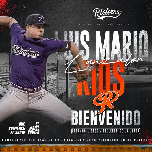 Rieleros De la Junta buscara el titulo 2026. Solido el staff de picheo con la nueva contratación de Luis Mario Ríos , lanzador derecho nacido en Navojoa ,Sonora, indiscutiblemente un brazo fuerte para sacar los triunfos en la temporada “Chiro Peters”que está por comenzar