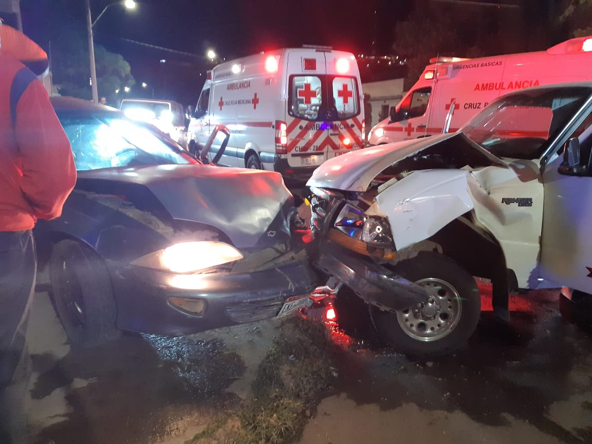 Se trata de un vehículo Tipo pick up, marca Ford, línea Ranger, color blanco conducido por una persona del sexo masculino de 33 años de edad. Se impacta contra un sedán, marca Chevrolet, línea Cavalier, color azul, conducido por una persona del sexo masculino de 42 años de edad, el cual resultó lesionado junto con sus acompañantes, una mujer de 20 años y tres menores de 9, 9 y 15 años de edad, los cuales fueron trasladados para su atención médica a un hospital de la ciudad.