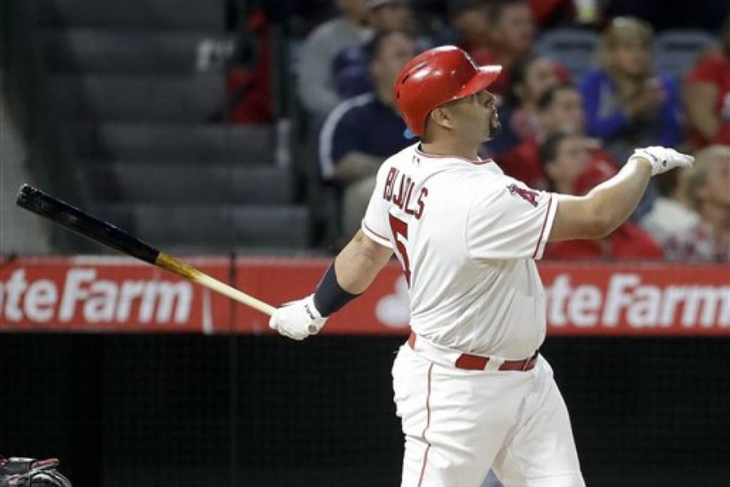 El dominicano Pujols quedó a un paso de batir la marca luego de un cuadrangular de tres anotaciones ante su compatriota Colón al principio de la mejor entrada de los Angelinos esta temporada.