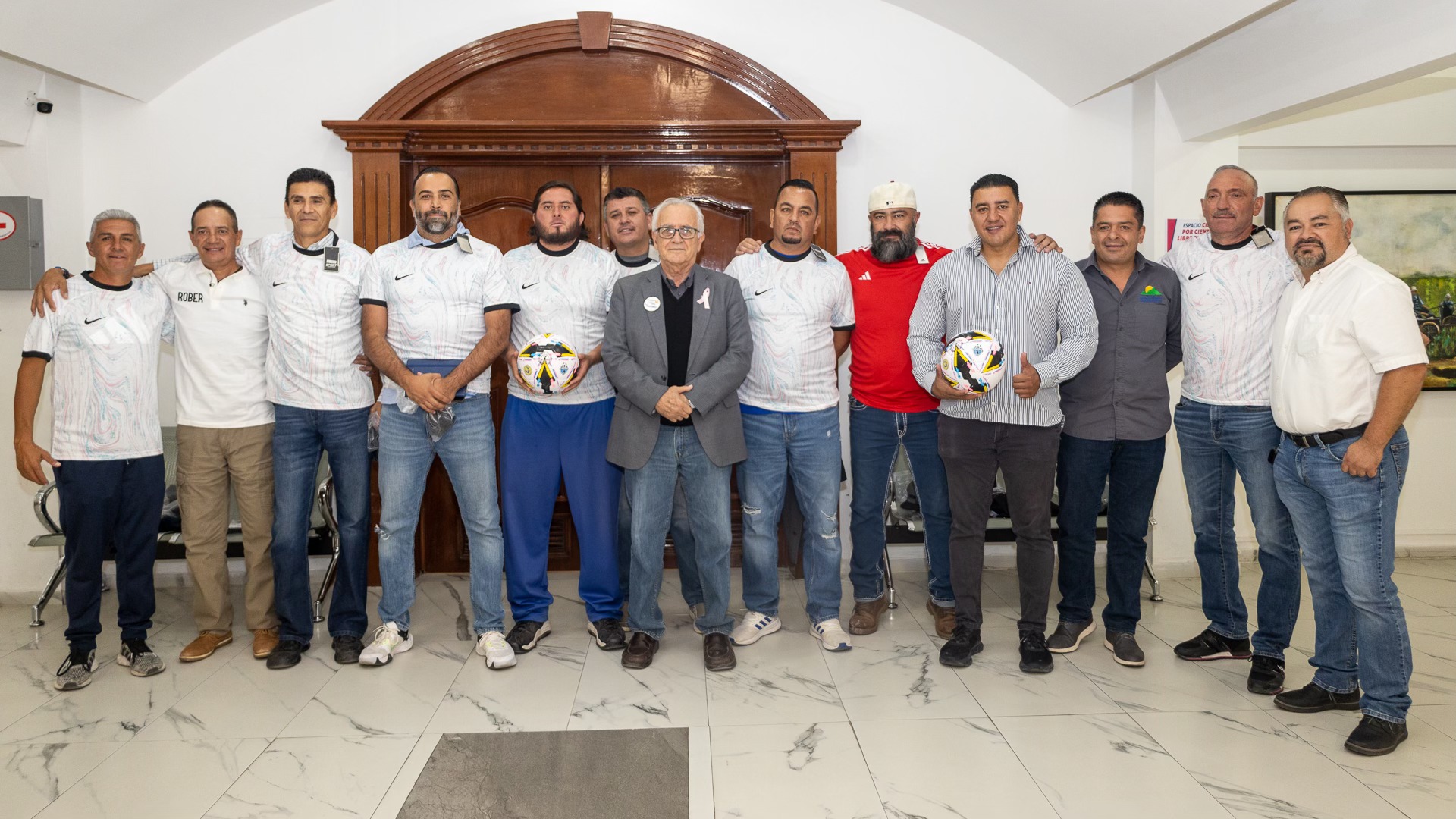 Cd. Cuauhtémoc, Chih.- El presidente municipal Beto Pérez hizo entrega de uniformes al equipo de veteranos de futbol “Cuauhtémoc FC”, como apoyo otorgado por parte del Gobierno Municipal a través del Instituto Municipal de Cultura Física y Deporte.