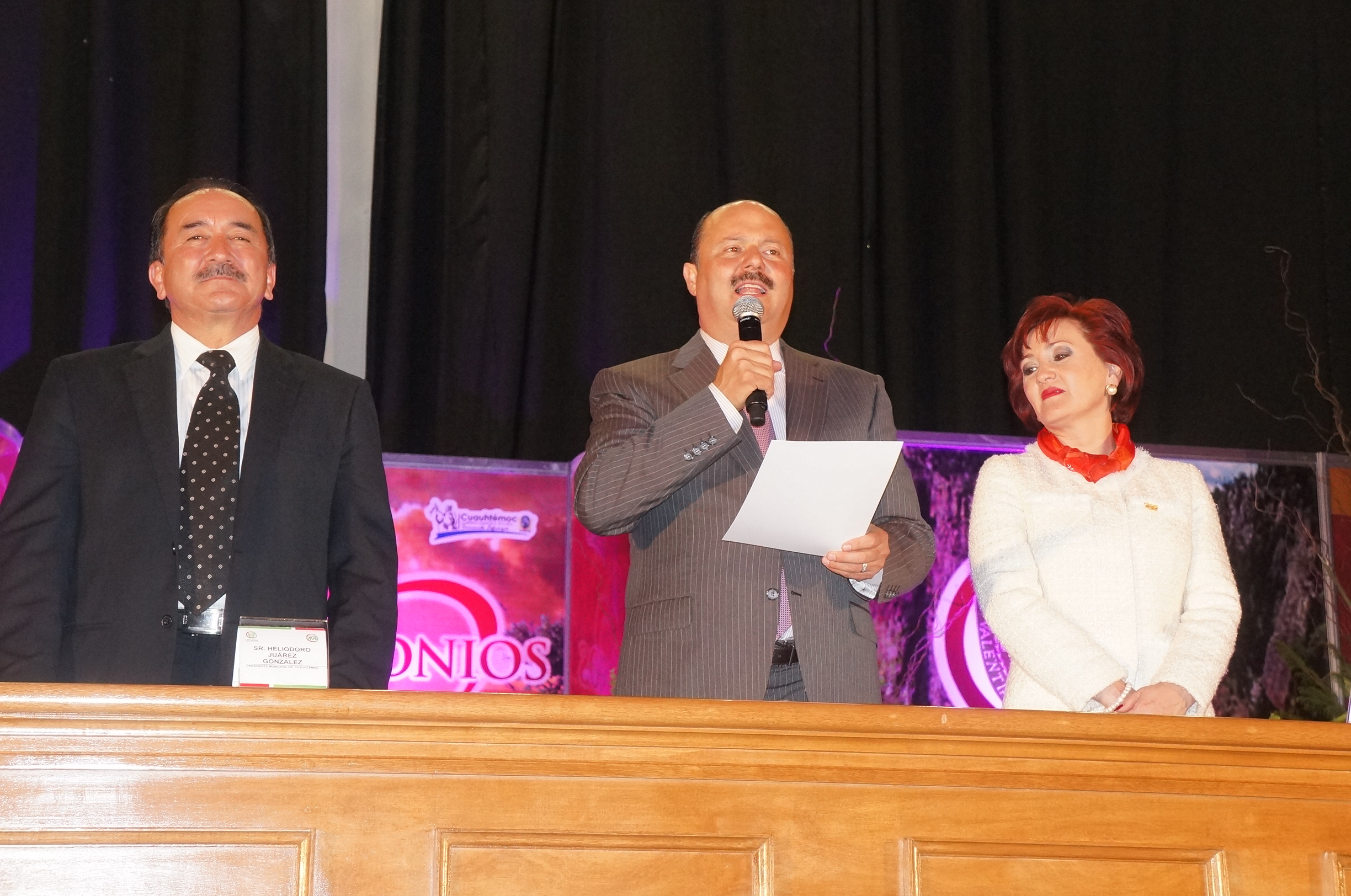 Cuauhtémoc.- En la boda colectiva realizada en esta ciudad, el alcalde de Cuauhtémoc Heliodoro Juárez González, se declara promotor de la familia y de la vida en matrimonio, pues afirma que la familia es la unidad más importante de la sociedad. El alcalde acompañó al gobernador César Horacio Duarte Jaques en la declaratoria de unión.