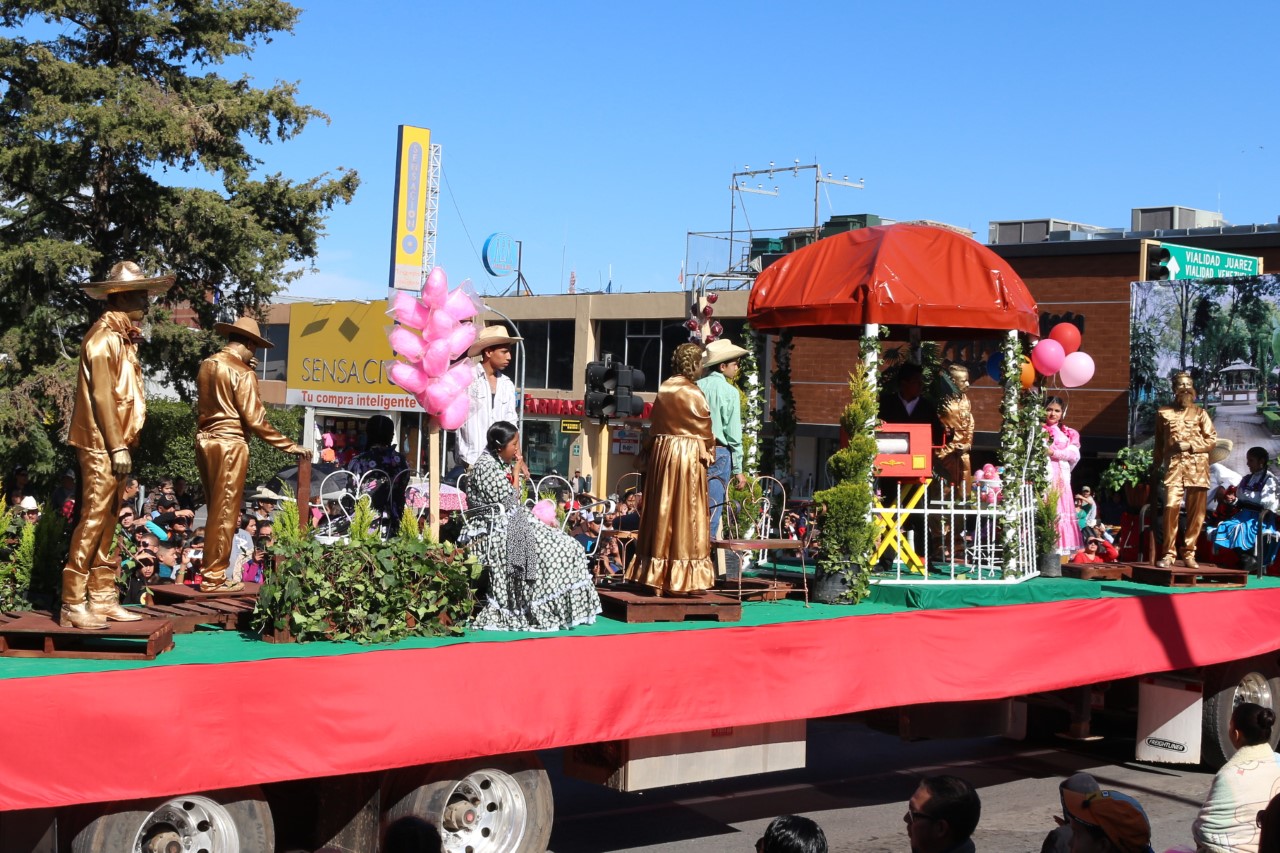 Los alumnos desfilaron en sus bandas de guerra, escoltas, carros alegóricos, grupos de porras, coreografías de acrobacias, carros de reinas y reyes, bandas musicales, clubes deportivos y danzas folclóricas, donde resaltaron hermosos vestuarios revolucionarios, representaciones de las tres culturas, estatuas vivientes, altares de muertos de héroes de la Revolución Mexicana y muchas otras variedades artísticas y culturales.