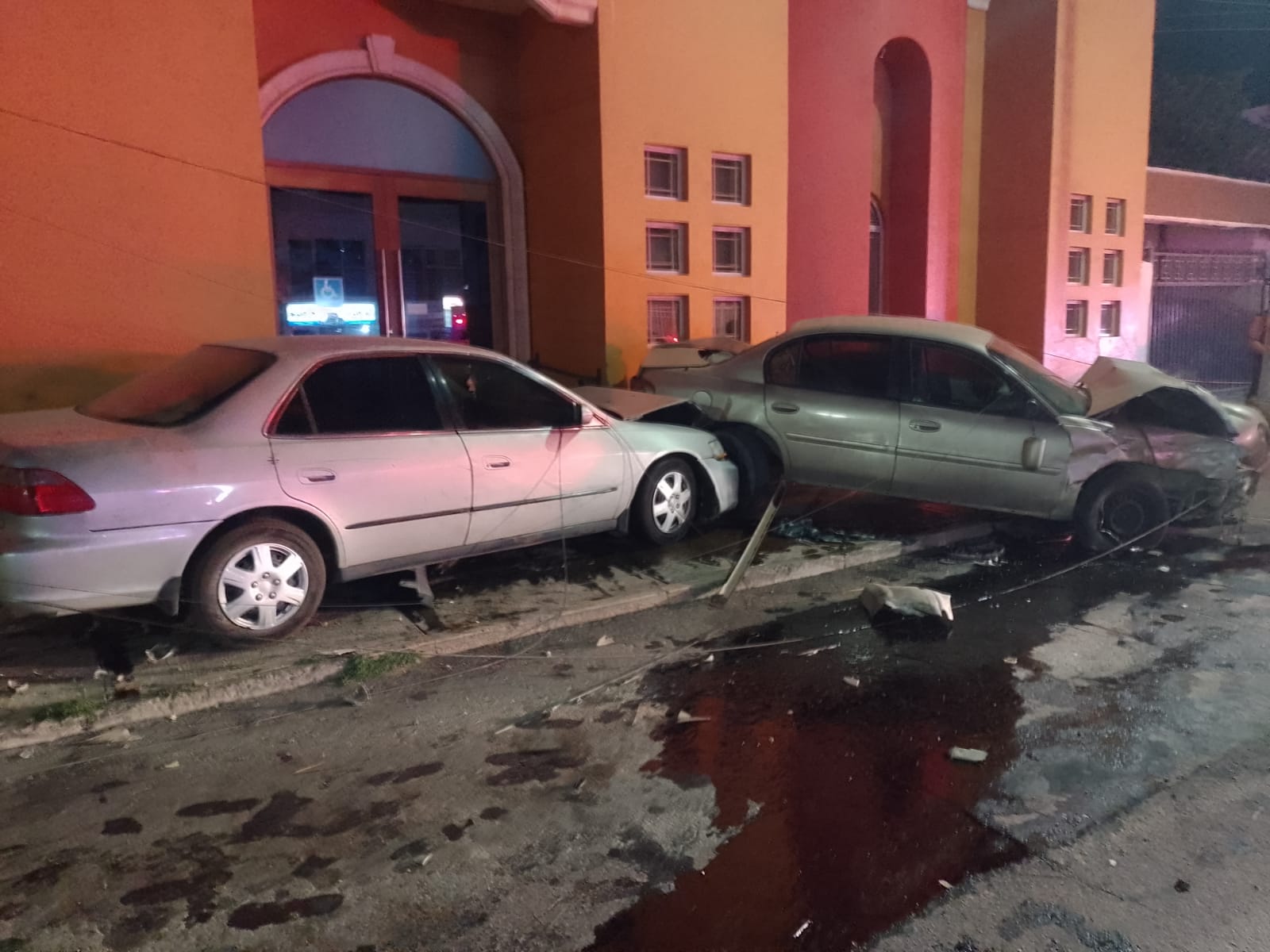 El vehículo Chevrolet Malibu transitaba sobre la avenida Agustín Melgar en dirección de norte a sur, al llegar al cruce con la Galeana, rebasó en bocacalle y fue impactado por el Honda, que circulaba en la misma dirección, luego del impacto fue proyectado hacia un poste de madera propiedad de Telmex, luego contra un señalamiento gráfico propiedad del municipio y finalmente detuvo su marcha en el local comercial del restaurante La Bodeguita.