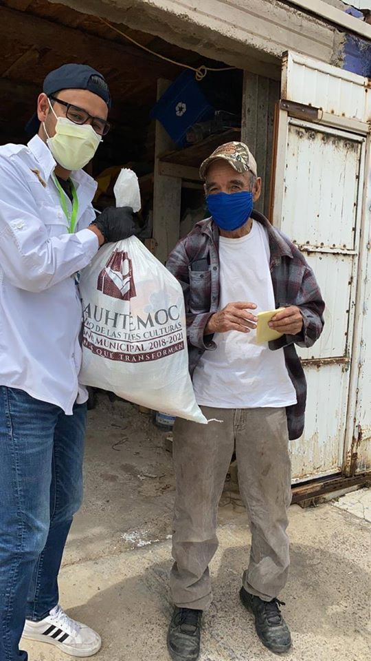 Además de sostener el apoyo económico a los adultos mayores que fungen como guardias escolares, el Gobierno Municipal de Cuauhtémoc les otorga un apoyo alimenticio para reforzar su sustento y el de sus familias durante esta contingencia en que se pide aislamiento total.