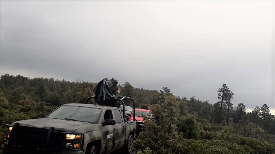 Elementos que participan en el operativo conjunto para prevenir y disuadir los delitos en diferentes localidades del municipio de Bocoyna, aseguraron dos vehículos de la marca Jeep que contaban con reporte de robo.