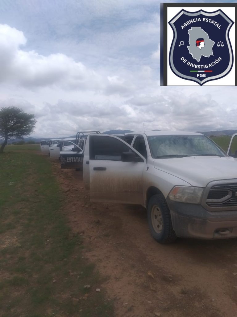 Al realizar recorridos en rancherías y caminos vecinales, se localizó una pick up, GMC, blanca, modelo 2014, con reporte de robo el 22 de junio del 2019 en Nuevo México, Estados Unidos y una camioneta Ford, línea Edge, color ladrillo, con placas sobrepuestas GKK 9433 del Estado de Texas, las cuales tienen reporte de robo.