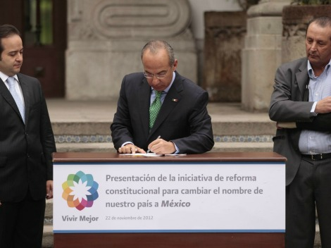 El presidente Felipe Calderón anunció esta mañana que enviará al Congreso una iniciativa de reforma para cambiar el nombre del país de Estados Unidos Mexicanos a México.