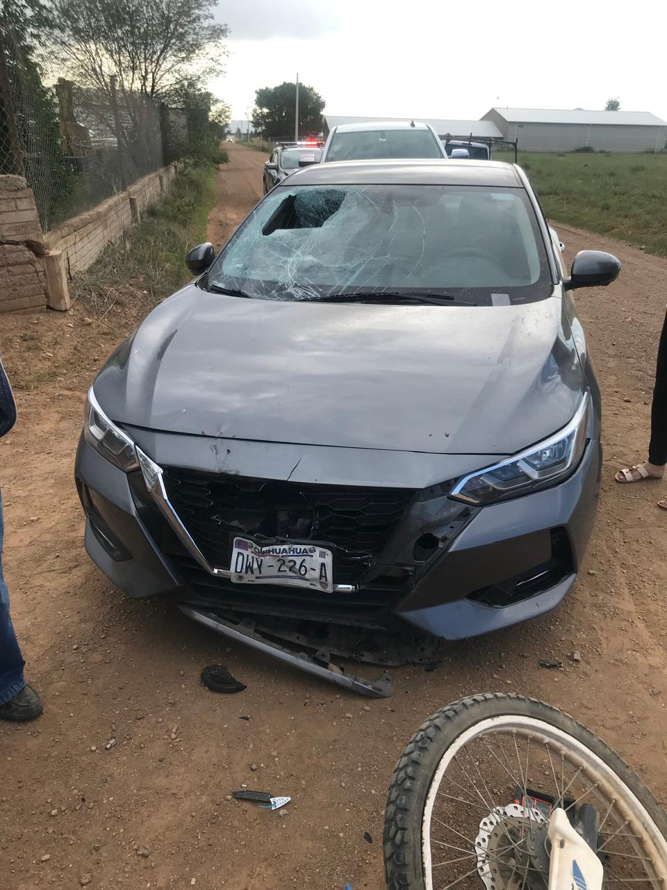 Transitaba la motocicleta sobre la brecha de terracería del campo Pampas, paralelo a la carretera 16 (a La Junta), cuando perdió el control de la unidad, impactando de frente contra el Nissan.
