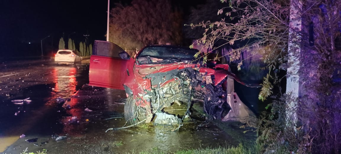 Cuauhtemoc, Chih.- La Policía Vial informó de un choque contra objeto fijo a las 01:20 horas del 2 de septiembre, en la avenida Venezuela a la altura del Salón la Quinta.