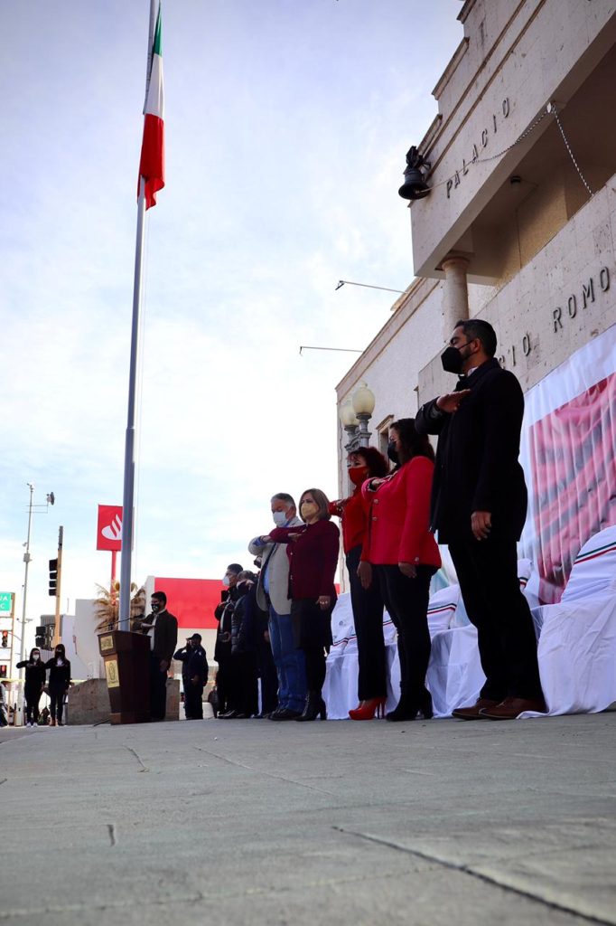 Con una ceremonia de honores e izamiento a toda asta de la bandera mexicana, autoridades civiles encabezadas por el Presidente Municipal de Cuauhtémoc, Romeo Antonio Morales Esponda, conmemoraron un aniversario más del Día de la Bandera.