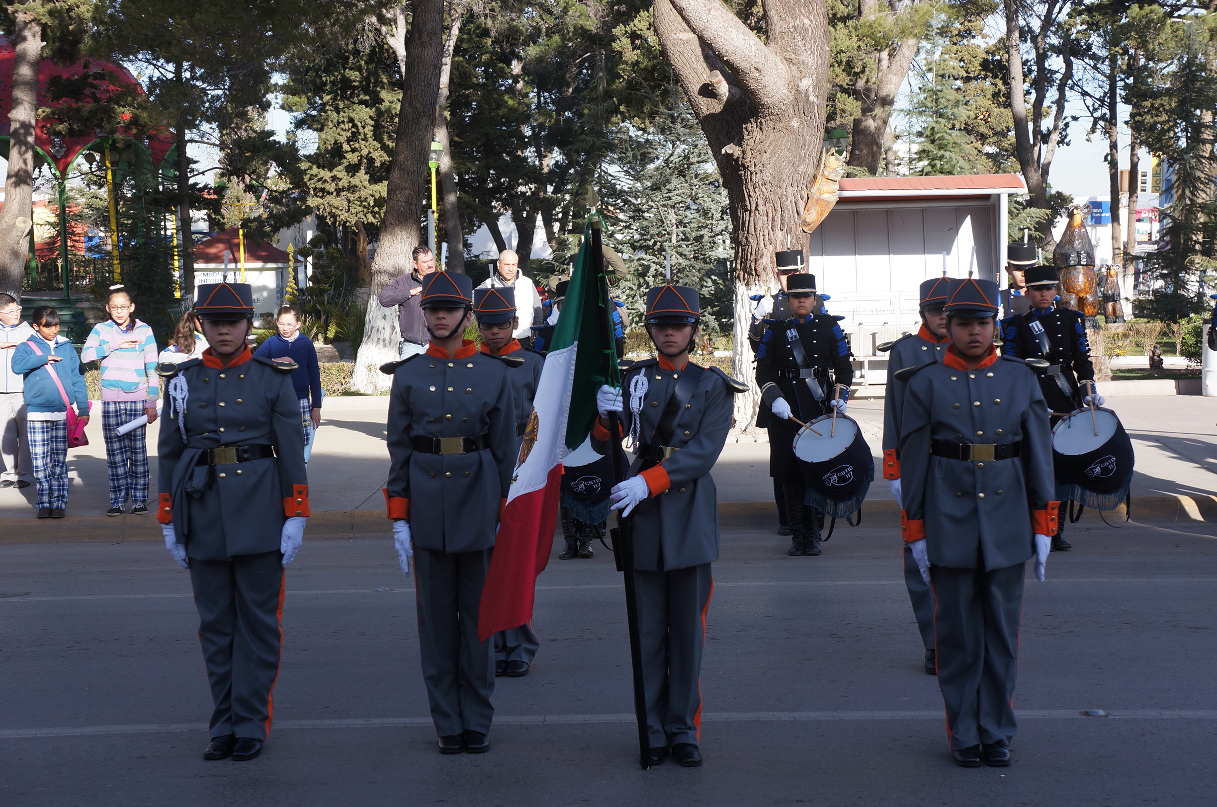 Acudieron alumnos y docentes de diversas instituciones para realizar los honores a la bandera y participar con diversos actos relaciones con la fecha. El coro Voces de la Ciudad, que dirige el maestro Juan Pablo Félix tuvo a su cargo la interpretación del Himno Nacional y el Himno de Chihuahua.