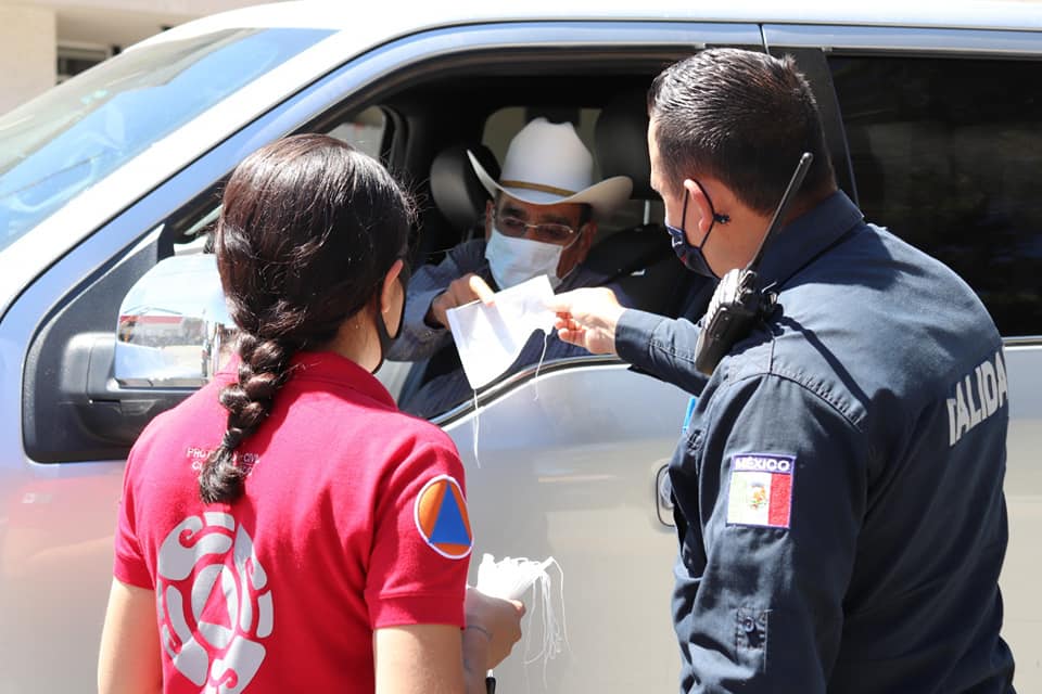 En los puntos de revisión de vehículos, como el implementado este día en la avenida Allende y Agustín Melgar, los efectivos adscritos a las citadas dependencias, obsequian cubrebocas y brindan recomendaciones a los tripulantes de vehículos, además que se pide el resguardo domiciliario en aquellas personas que padecen enfermedades crónicas, además que vaya el numero apropiado de tripulantes.