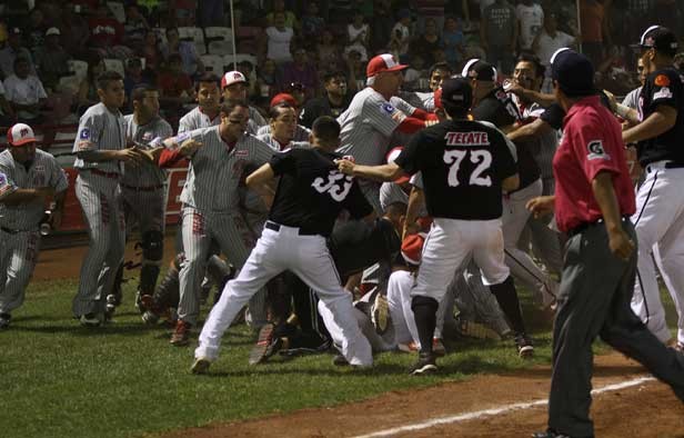 La toma de decisiones del cuerpo de umpires fue más implacable con los locales, pese a que hubo peleas entre otros tantos jugadores de ambos equipos. Adrián Osuna fue costaleado por un pelotero de Parral por la espalda. También Guadalupe Quintero se dio de golpes con otro par de Mineros.