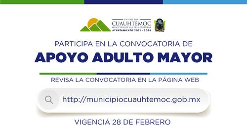 Gobierno Municipal de Cuauhtémoc a través de la Dirección de Desarrollo Social, convocan a los adultos mayores considerados en pobreza extrema o moderada a participar en el programa