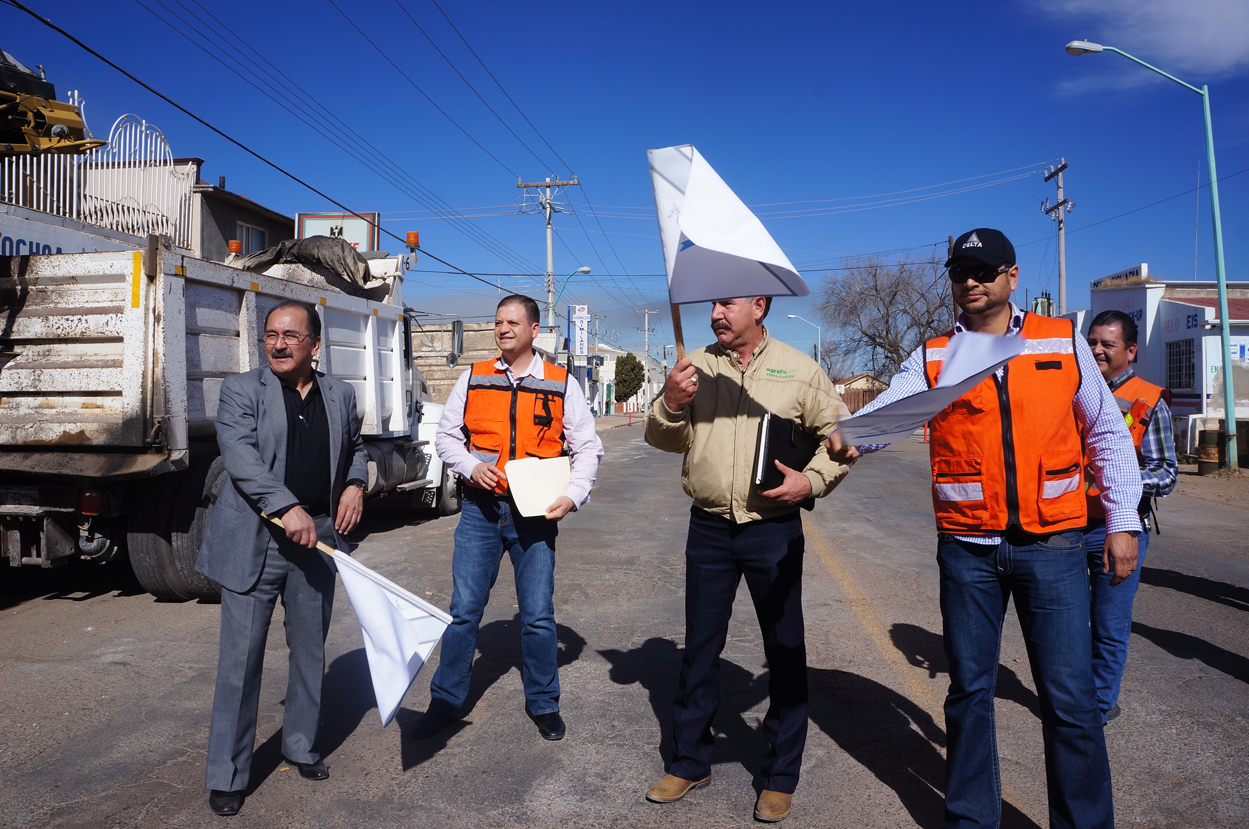 Cuauhtémoc.- El presidente municipal Heliodoro Juárez González y el director de Obras Públicas Hugo Delgado, dieron el banderazo de arranque para las obras de recarpeteo en la calzada Belisario Chávez de esta ciudad.