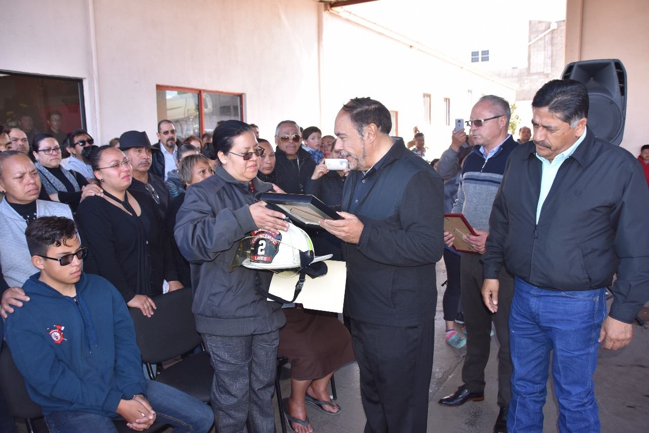 Ciudad Cuauhtémoc, Chih. – Familiares, amigos y elementos de todas las corporaciones de seguridad y rescate estuvieron presentes en el homenaje de cuerpo presente que autoridades municipales rindieron al Comandante Guerreros Lares Alvidrez en las instalaciones del Departamento de Bomberos.