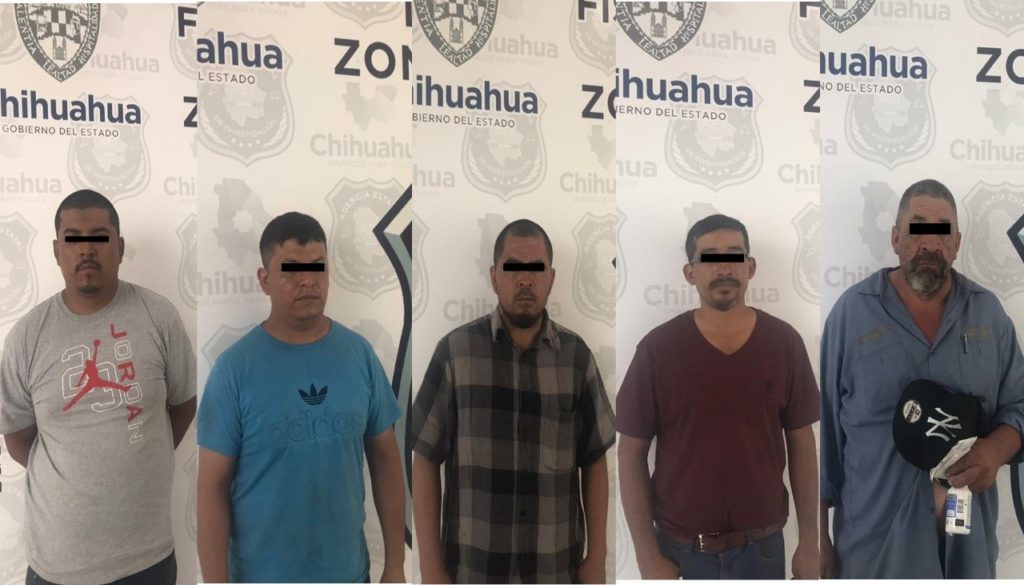Cuauhtémoc.- elementos de la Agencia Estatal de Investigación (AEI) detuvieron a cinco sujetos en un hotel de la ciudad, en posesión de un auto con reporte de robo y cuatro automotores de procedencia extranjera.