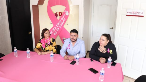 En rueda de prensa, Fabiola Rodriguez en su calidad de Vicepresidenta del Club Rotario Cuauhtémoc Rarámuri, Norma Madrid, como Presidenta de Resurgir A.C. y Marco Alan Zamarripa Acosta, Director del DIF Municipal, informaron este esfuerzo conjunto en este mes de octubre, considerado mes de la sensibilización contra el cáncer de mama.