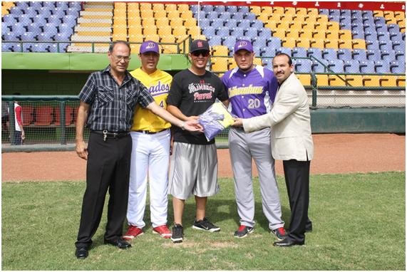 En esta reunión breve los directivos Sergio Medina presidente de la Liga Estatal de beisbol y Javier Porras en representación del ICHDCF, hicieron entrega a las 11 de la mañana oficialmente a los jugadores dos uniformes.