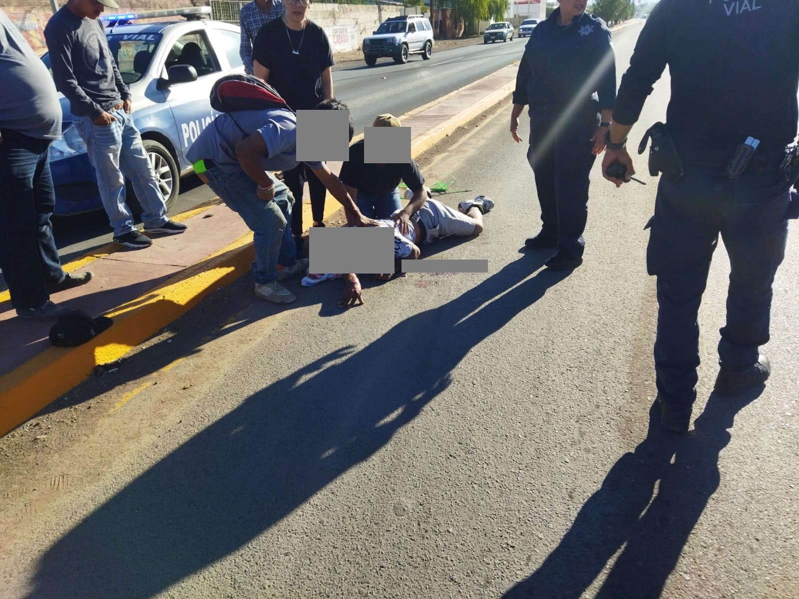 Cuauhtémoc, Chih.- La Policía de Vialidad y Tránsito atendió un reporte de accidente con motocicleta a las 16:47 horas del 06 de octubre, en la avenida Periférico y Morelos, en estos hechos hubo dos personas lesionadas.