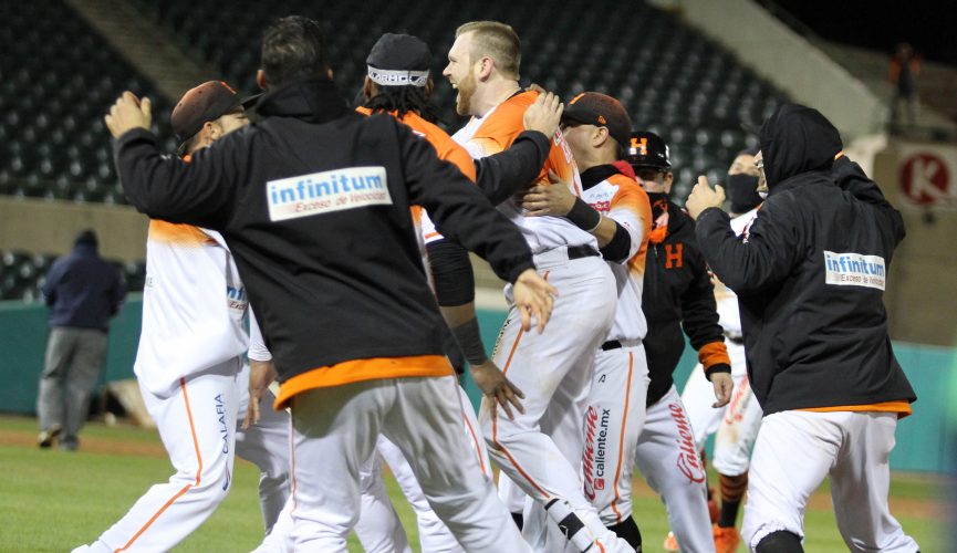 Prensa Club Naranjeros de Hermosillo: Naranjeros se llevó la victoria ante los Cañeros de Los Mochis por 6-5 dejándolos tendidos en el terreno de juego y así emparejando la primera serie de playoffs este miércoles en el Estadio Sonora.