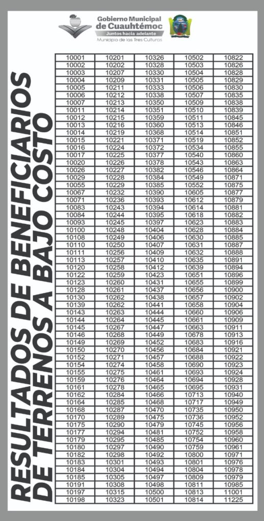 La lista de beneficiarios se encuentra disponible con los números de folios respectivos en la página web y de Facebook del Gobierno Municipal de Cuauhtémoc, así como en los centros comunitarios y la edición impresa de este miércoles en los diarios de mayor circulación estatal.