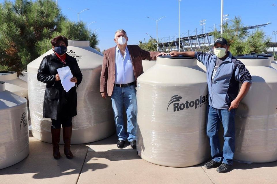 Este martes, en manos del Presidente Municipal, Romeo Antonio Morales Esponda, así como de la titular de la dependencia, Carolina Jiménez Ramos, 44 jefes de familia habitantes de distintas colonias periféricas de la cabecera municipal, así como del seccional Álvaro Obregón, recibieron sus tinacos que previamente pagaron con un subsidio del 37.47 por ciento del costo total.