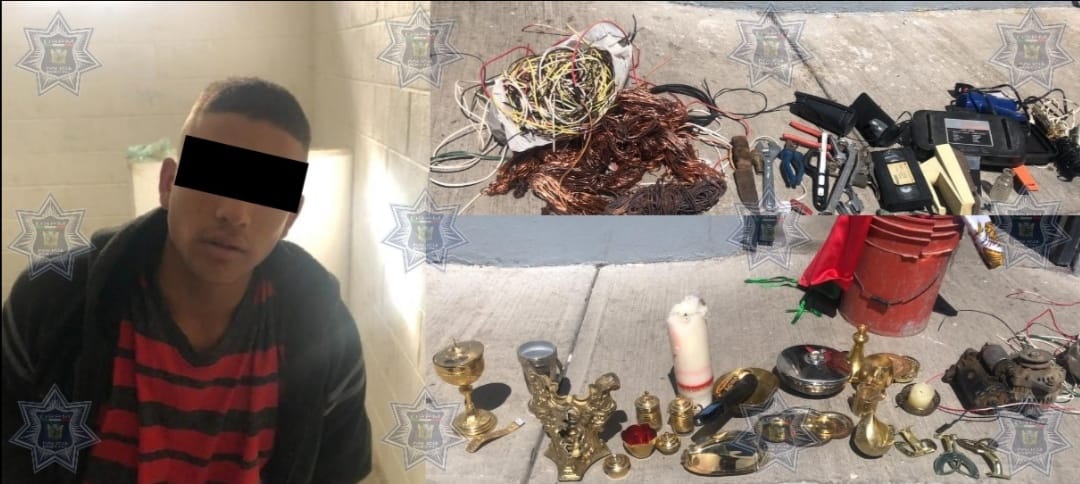 Posteriormente dicho individuo hizo entrega voluntaria de varios artículos que obtuvo en varios hechos de robo tales como una marcha y un alternador para automóvil, varias piezas de la iglesia “la Sagrada Familia” así como cableado de luz y alrededor de 5 kilos de cobre.