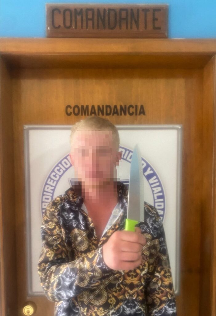 Explicó que el joven se salió de la casa desde el día anterior y regresó esta mañana, cerca de las 9:30 horas, en estado de ebriedad. Al ser reprimido por sus padres, se molestó y tomó un cuchillo con el que intentó causar daño a su propio papá, por lo que se pidió el auxilio de las autoridades.