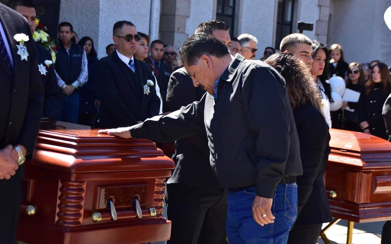 La primer guardia al lado de los féretros la encabezó el Presidente Municipal, su esposa Lupita de Tena, el Sub Director Administrativo de la Dirección de Seguridad Pública y Vialidad, Juan Sagarnaga Ruiz y el Delegado Administrativo de Vialidad y Tránsito, Serbio Valdéz Hinojos.