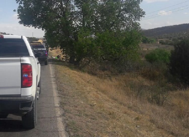 Al arribar al kilómetro 4+100, aproximadamente a 100 metros de la entrada al basurero municipal, se observó el cuerpo sentado de al parecer un masculino de 1.75 de estatura aproximadamente, que vestía short de color azul y pantalón color café, chamarra de color negro con capucha, la cual le cubría la cabeza y la cara.