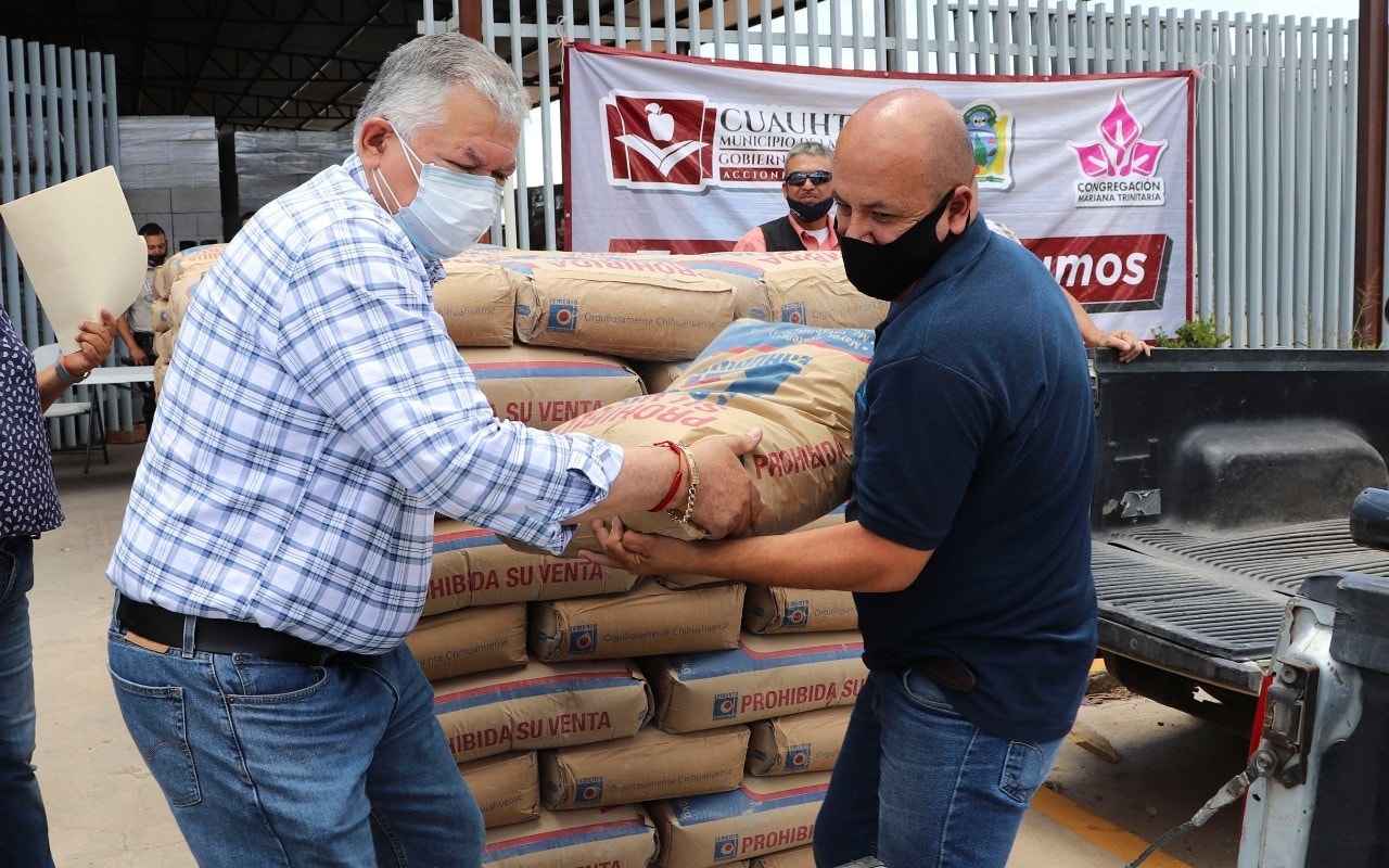 Dentro del programa permanente de vivienda digna que ha implementado el Gobierno Municipal de Cuauhtémoc y derivado de la gestión de recursos y el convenio establecido con la Congregación Mariana Trinitaria, la Dirección de Desarrollo Rural entregó 48 toneladas de cemento subsidiado a beneficio de 32 familias de Cuauhtémoc y del Seccional Lázaro Cárdenas.