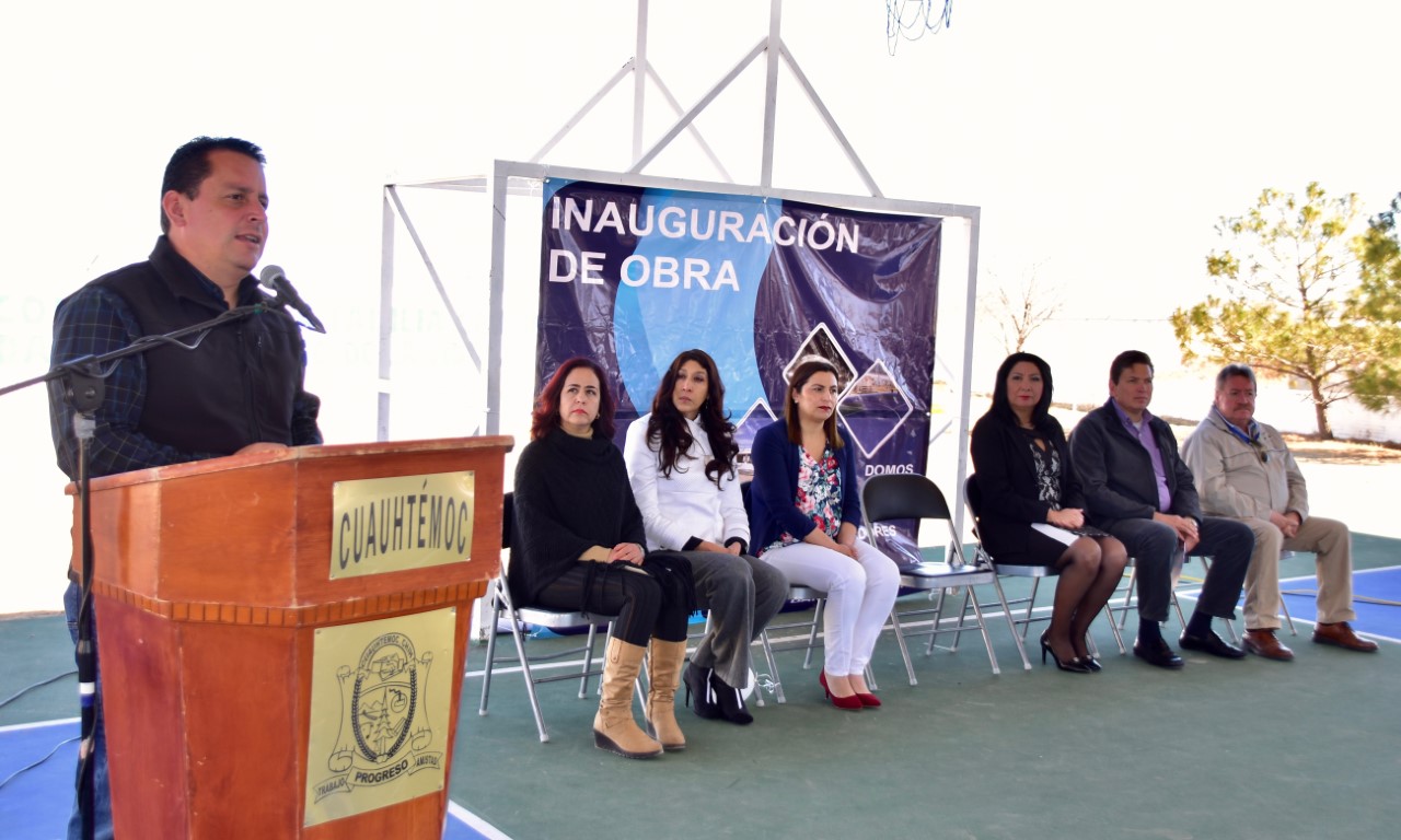 Cd. Cuauhtémoc, Chih.- El Gobierno Municipal realizó la entrega de un domo y una cancha en la primaria Guadalupe Victoria, que tuvo una inversión de un millón 423 mil pesos, procedentes del fondo federal Fortalece.