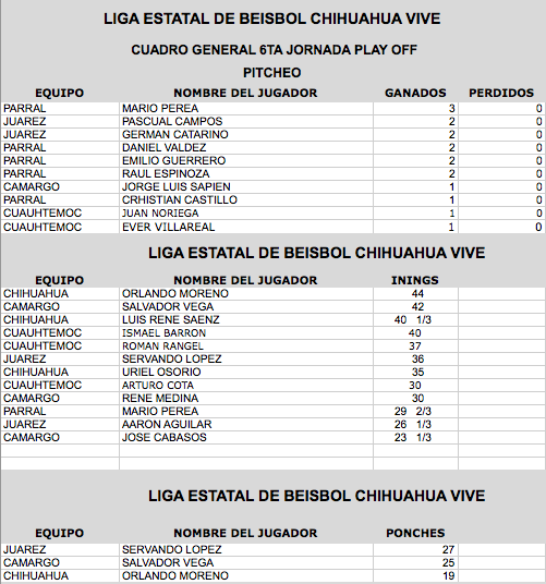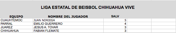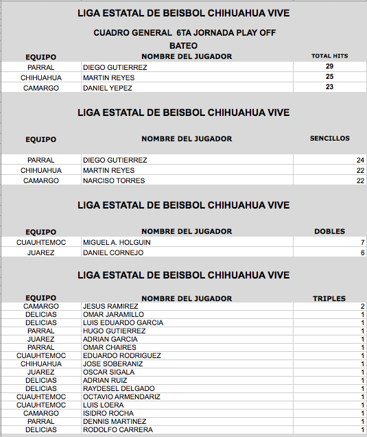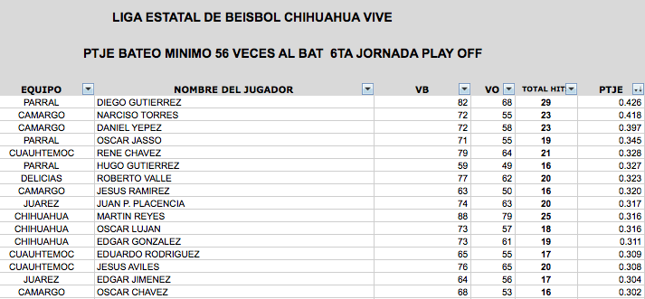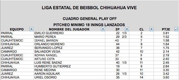 www.beisbolcuauhtemoc.com.- El minero Diego Gutierrez, se convirtió en el mejor bateador de la segunda ronda con un bateo de 0.426 de porcentaje, en tanto en pitcheo, también de los Mineros aparece Emilio Guerrero con un 0.81 en carreras limpias admitidas.