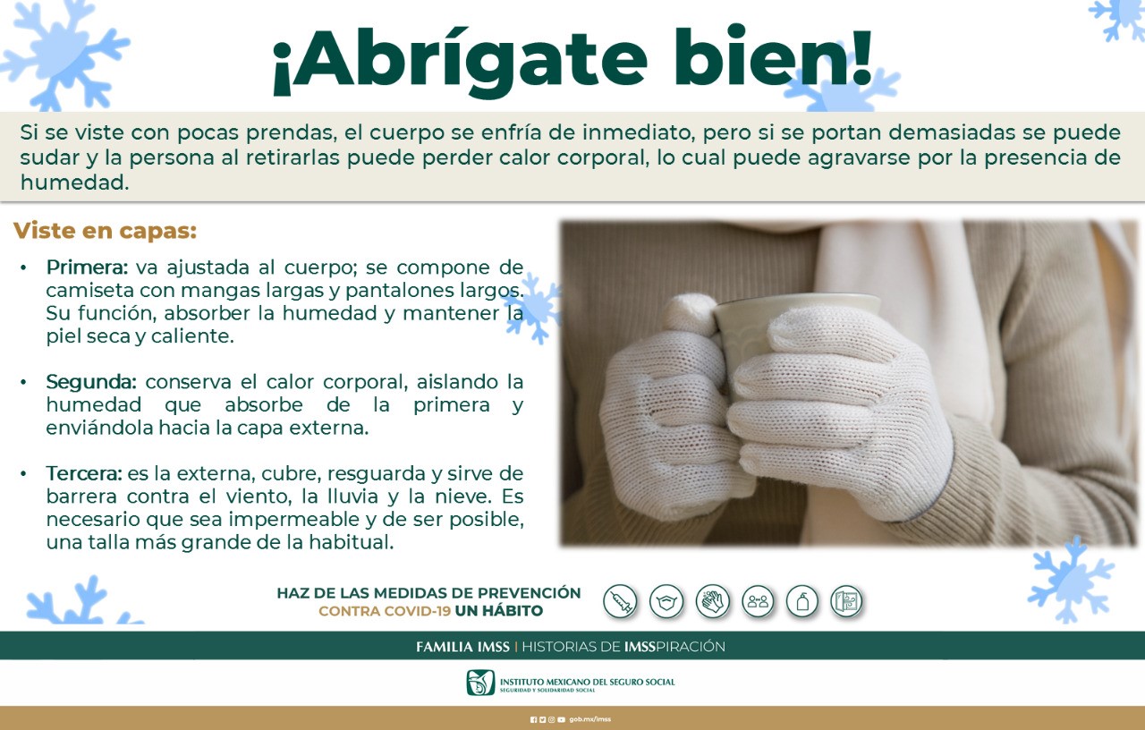 · Se exhorta a usar chamarras gruesas, guantes y gorros