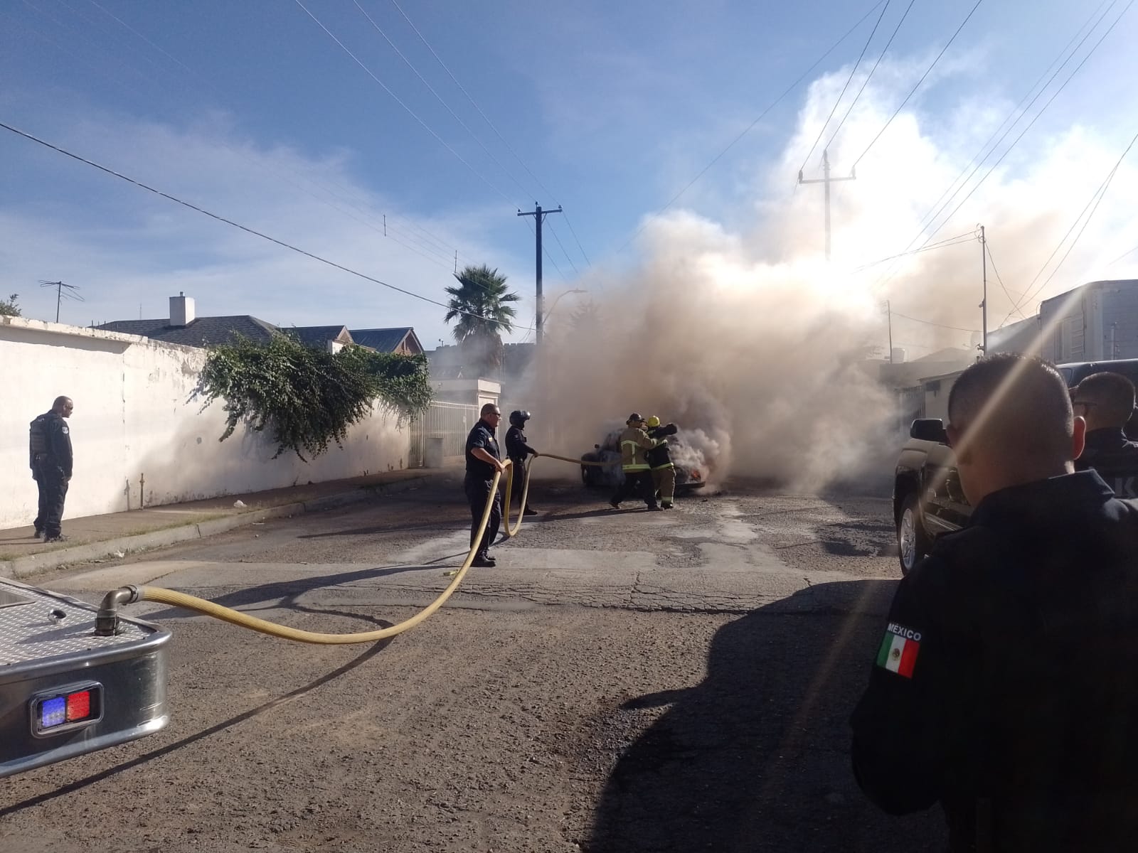 Cuauhtémoc, Chih.- La Policía Municipal informó que a las 17:09 horas del 12 de septiembre, en la avenida Independencia y calle 23a, del fraccionamiento Independencia, se reportó que había un incendio de vehículo.