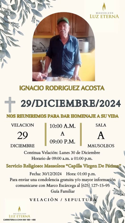 BEISBOL CUAUHTEMOC.NET. SE UNE A LA PENA QUE EMBARGA A LA FAMILIA DE JORGE RODRIGUEZ DE CUAUHTV POR EL SENSIBLE FALLECIMIENTO DE SU SEÑOR PADRE DON IGNACIO RODRIGUEZ ACOSTA.DESCANSE EN PAZ