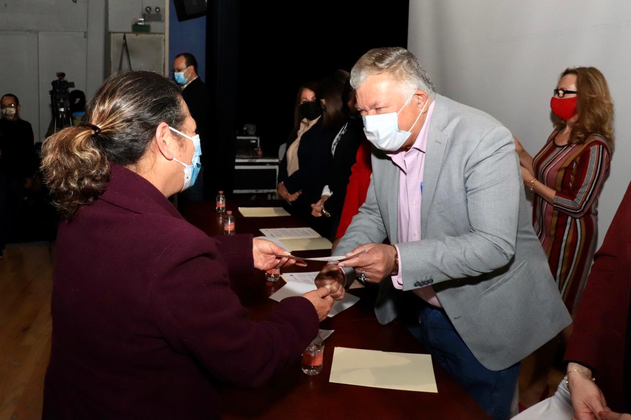 En manos del Presidente Municipal, Romeo Antonio Morales Esponda, los 37 beneficiarios recibieron los cheques de apoyo correspondientes a los programas Microemprendedores, Crédito Constructivo y Mujer Productiva, con una inversión total de 185 mil pesos.
