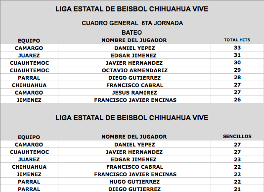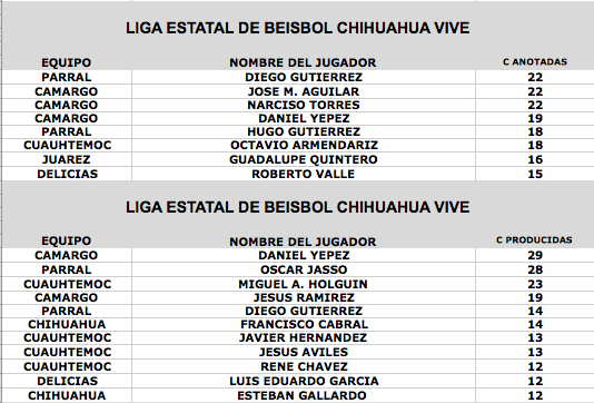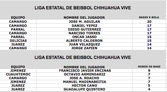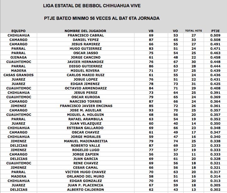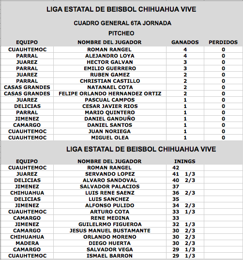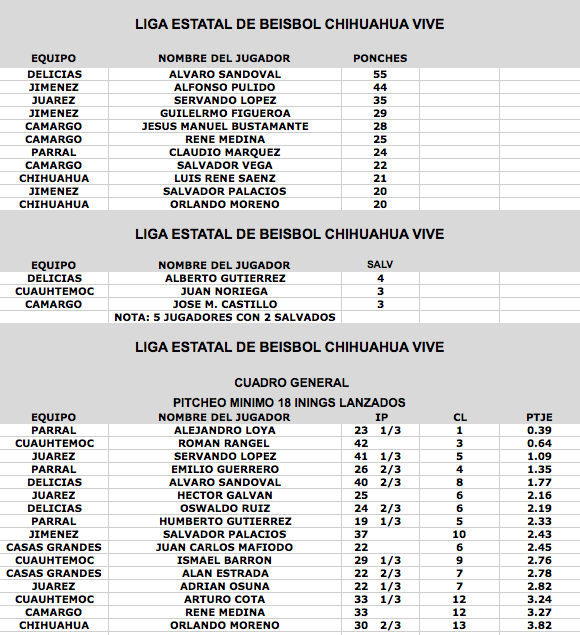 www.beisbolcuauhtemoc.com.- El jugador de Dorados de Chihuahua, Francisco Cabral es el lider de bateo con un 0.509 de porcentaje en cuadrangulares aparece Oscar Jasso con 5, en tanto en el departamento de pitcheo Roman Rangel y Alejandro Loya aparecen con 4 ganados y 0 perdidos