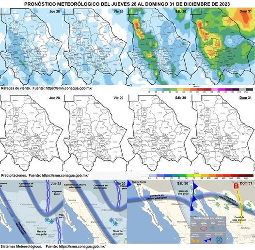 En cuanto a los vientos estos irán de 5 a 20 kilómetros por hora (km/h), con ráfagas que pueden alcanzar los 35 km/h en Guerrero, Carichí y Nonoava.