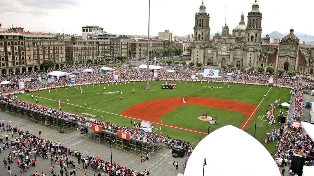 Tal y como ocurrió el 14 de junio pasado, para este fin de semana se montó un campo de béisbol con pasto sintético en plena plancha del Zócalo de la Ciudad de México, y además de la competencia de cuadrangulares ahí se llevaron a cabo varias actividades.