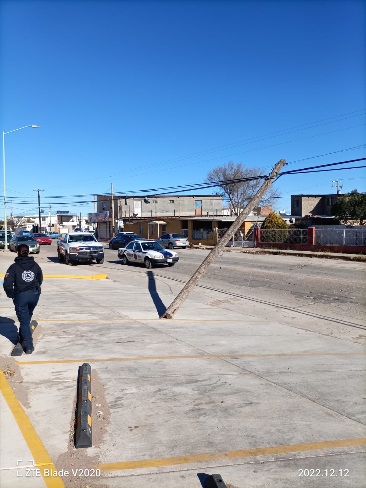 A las 10:07 horas de este 12 de diciembre, acudieron a las calles Américas y Presa de la Amistad, en donde un poste de Telmex se desprendió del suelo, colgando de los cables de la misma compañía, por lo que fue necesario limitar el tránsito en esta zona hasta que acudiera personal de la empresa a reparar el desperfecto.