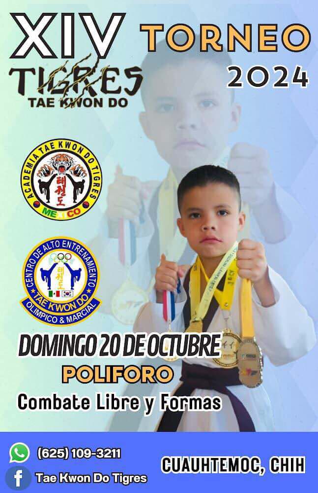 La Academia Tae Kwon Do Tigres, de Ciudad Cuauhtémoc, organizará El domingo 20 de octubre en Cuauhtémoc.