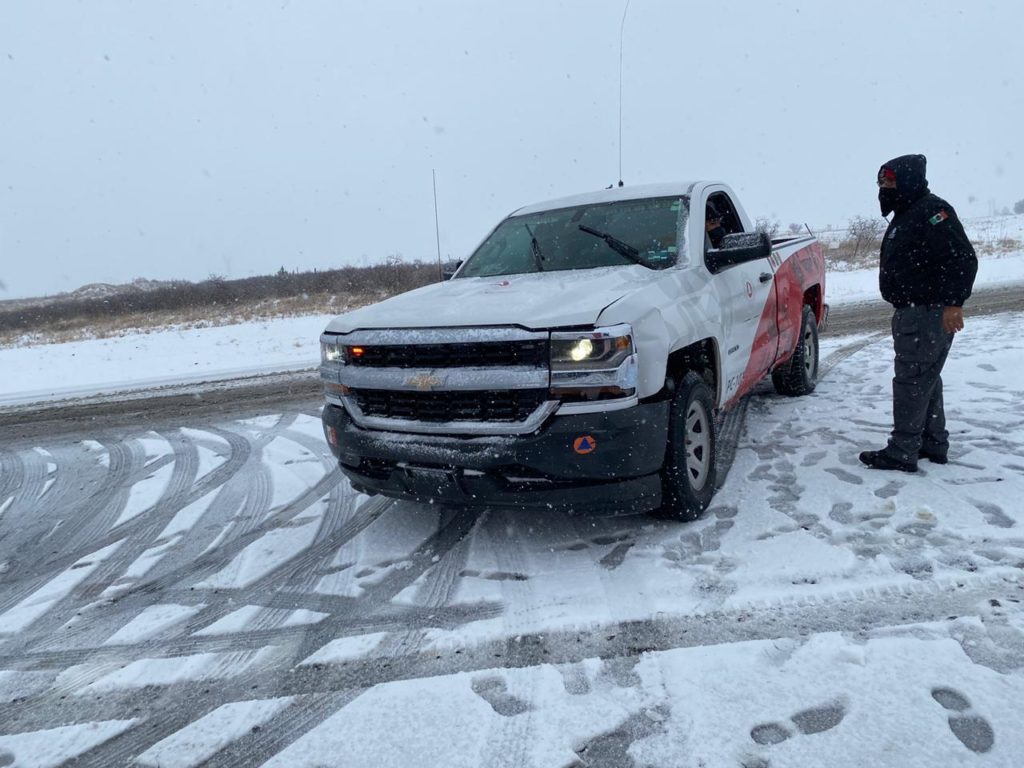 La Unidad Municipal de Protección Civil y el heroico cuerpo de bomberos, apoyados por la Guardia Nacional división caminos, implementaron un protocolo de actuación para vigilar carreteras y calles de la ciudad ante posibles cristalización de la precipitación en forma de nieve que registra el municipio, además para resguardar a personas de calle.