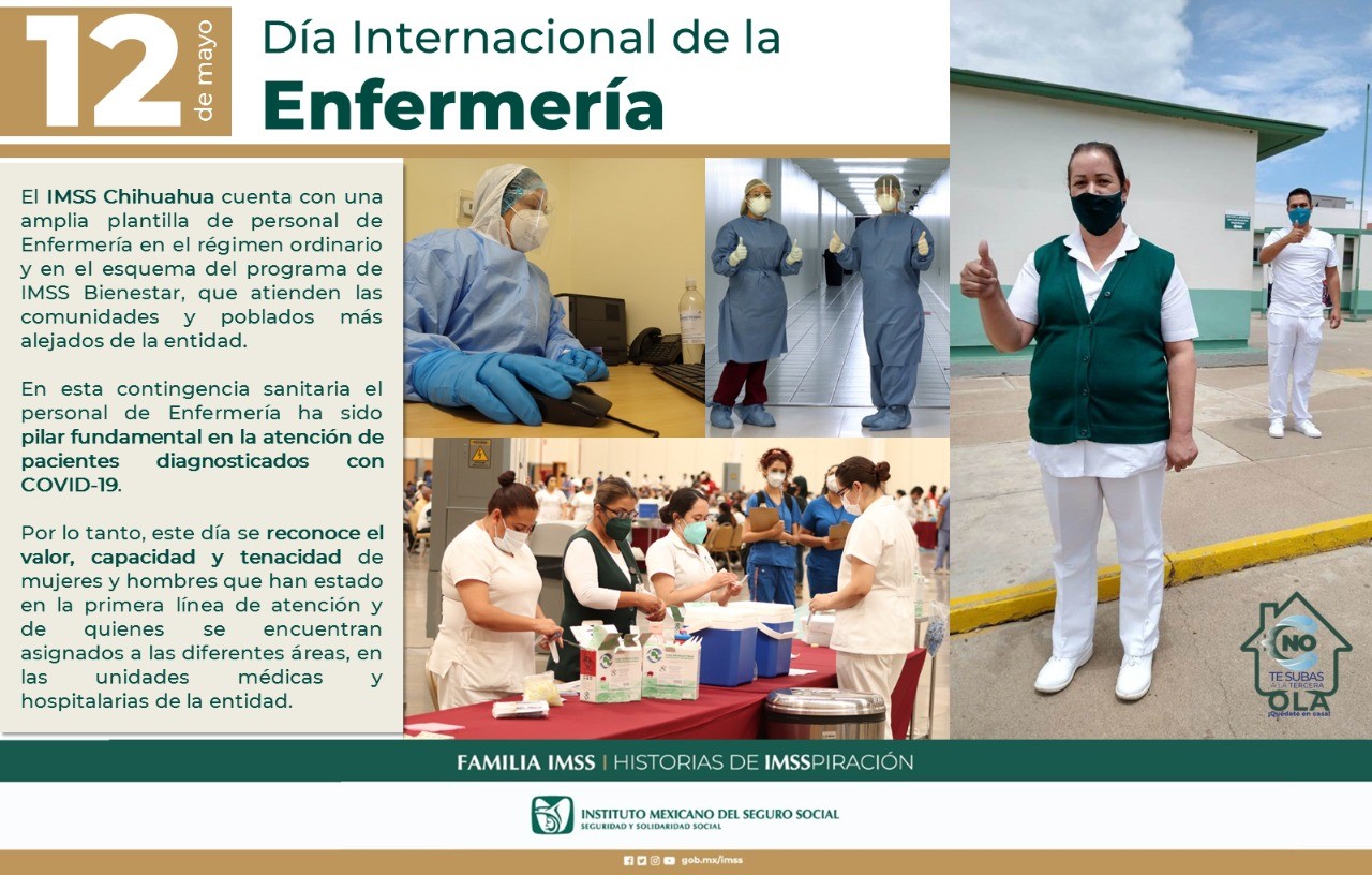 En el marco del Día Internacional de la Enfermería, a celebrarse este 12 de mayo, el Instituto Mexicano del Seguro Social (IMSS) en Chihuahua refrenda su apoyo y compromiso con las y los trabajadores de esta importante categoría.