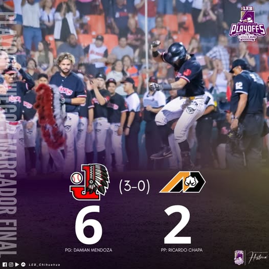La serie, pactada a ganar cuatro de siete, se inclina de manera contundente a favor de Juárez. Sin embargo, el mánager Pablo “El Pistolero” González fue claro tras el triunfo: “No hemos ganado nada, vamos por todo a Delicias”.
