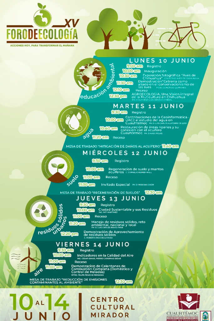 El programa continuará durante los días martes, miércoles, jueves y viernes con diversas conferencias, talleres, ponencias y mesas de trabajo por un Cuauhtémoc sustentable sobre mitigación de daños al acuífero, regeneración de suelos y reducción de emisiones contaminantes al ambiente.