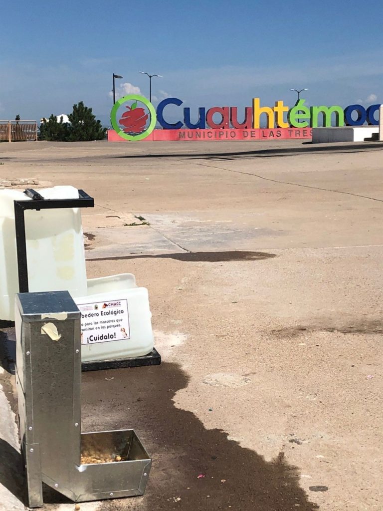 Con el firme compromiso de velar por condiciones dignas de vida para las mascotas, el Centro Municipal de Adopción y Contención Canina de Cuauhtémoc inició la instalación de comederos y bebederos para perros en situación de calle, mismos que estarán en funcionamiento desde la presente semana en lugares públicos como lo son parques.