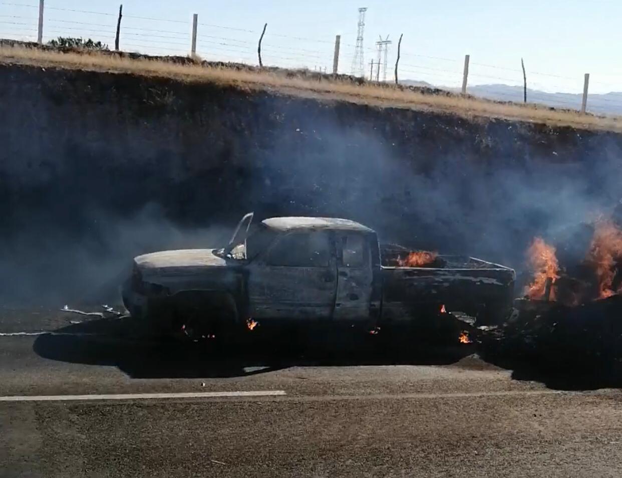 Una picap  que trasportaba  pacas de pastura se incendio en carretera Cuauhtémoc Chihuahua, por fortuna solo daños materiales. Se atienden varios  reportes de auxilio por parte de Bomberos, informo de manera  preliminar, Iván Miramontes vocero de Seguridad Publica Municipal.